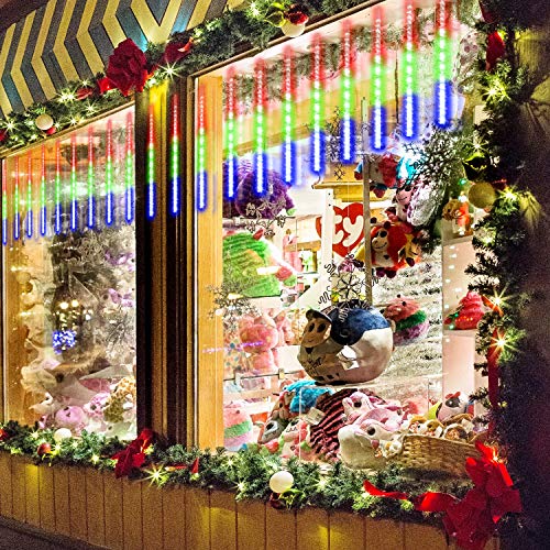 GPODER Doccia Pioggia Luci 30CM, 8 Impermeabile Tubo Luci Della Pioggia Di Meteore, 288 Leds Waterfall Light Per Natale/Esterno/Albero/Casa/Giardino/All'Aperto Decorazione(Multicolore)