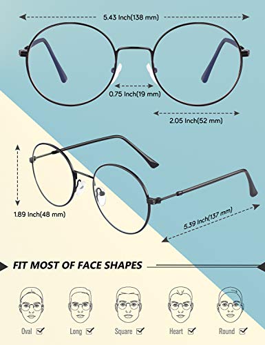 GQUEEN Occhiali Filtro Luce Blu per Computer Anti Bagliore e Anti Affaticamento degli Occhi, con Cornice Rotonda in Metallo Retro, GQ40