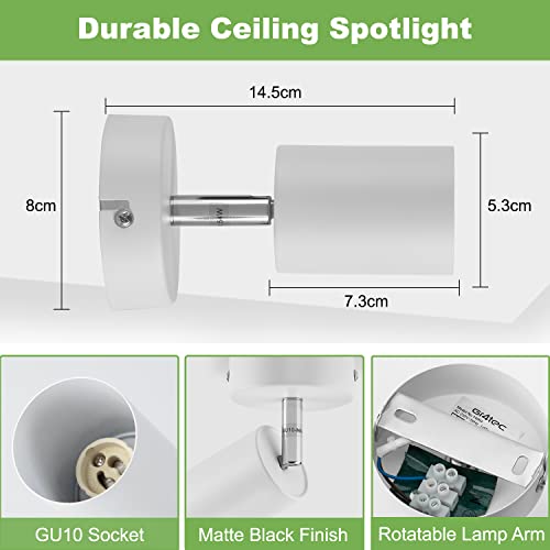 Gr4tec Faretti da Soffitto Orientabili 350° Bianco, Faretto LED Soffitto con 2x 6W Lampadine GU10 Bianco Caldo 2700K 550LM, Faretti da Parete AC 220V-240V, Plafoniera LED Faretti per Cucina Corridoio