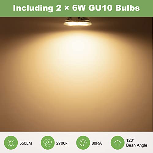 Lampadine incluse: I lampada faretti led soffitto includono anche 2 x 6W GU10 lampadine (2800K), con luce bianca calda che crea un'atmosfera piacevole e un'illuminazione ambiente in qualsiasi interno. La luce a LED consuma il 90% in meno di energia rispetto alle lampade ad incandescenza. Dimensioni base dei faretti orientabili: φ8cm x H2.5cm, dimensioni dell'ombra: φ5.3cm x H7.3cm, dimensioni delle lampadine: φ5cm x H 5.3cm