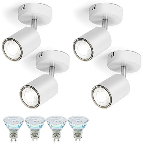 Gr4tec 4 x Faretti Led da Soffitto Orientabili 350°, con 4 x 6W Lampadine GU10, Luce Naturale 4000K, Faretto da Parete, AC 220V-240V 550LM, Lampadario Faretti LED per Soggiorno, Corridoio, Cucina