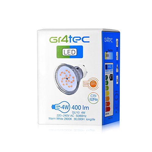 GU10 LED Gr4tec 10x Lampadine Faretti GU10 a LED 4W Equivalenti a Lampadine Alogene da 35W Luce Bianca Calda 400lm 2800K Incasso Soffitto Soggiorno Stanza Super Risparmio Energetico