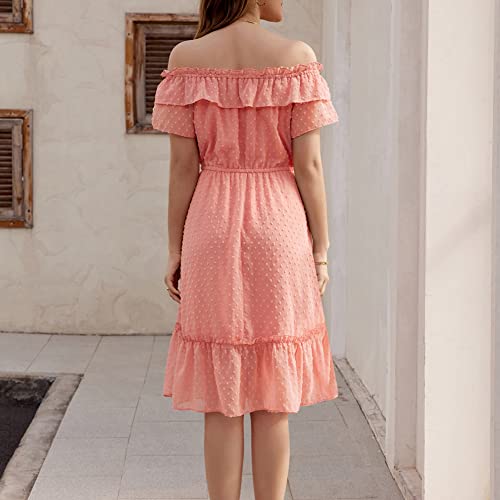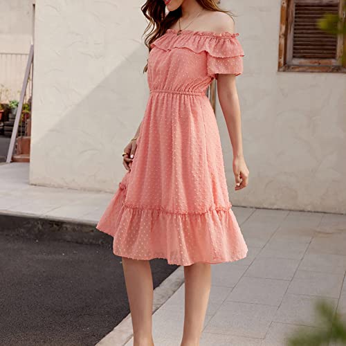 GRACE KARIN Abito estivo da donna, elegante, a maniche corte, linea ad A, per il tempo libero, lunghezza al ginocchio, da cocktail, da spiaggia con orlo increspato CL0966S22BR, rosa su poliestere, XXL