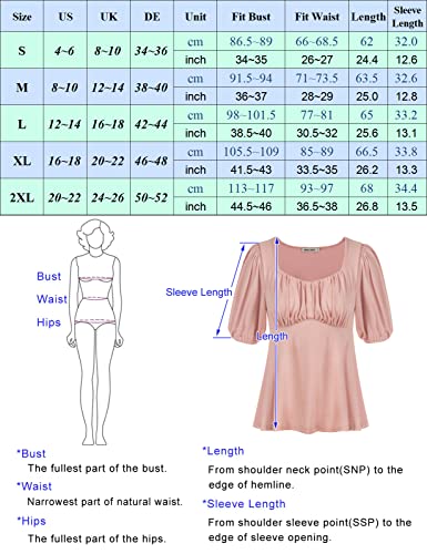 GRACE KARIN Camice da Donna a Manica Corta a Sbuffo Tinta Unita Blusa Elegante Primavera Estate Rosa XL