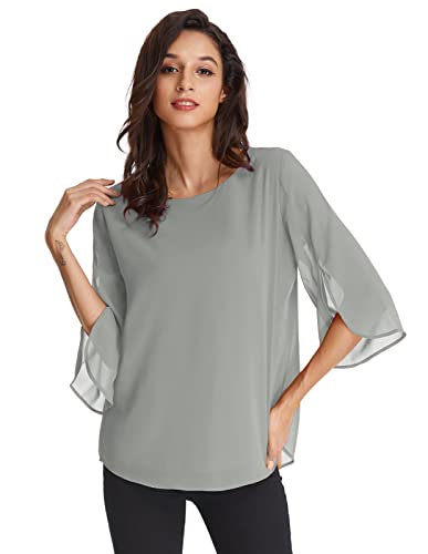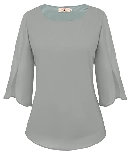 GRACE KARIN Camicia Donna Scollo Tondo Maniche 3/4 in Chiffon Leggero Morbido Traspirante per Estivo Primavera Grigio Chiaro L CLAF15-8