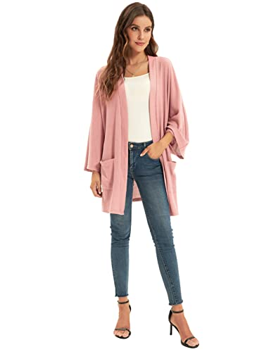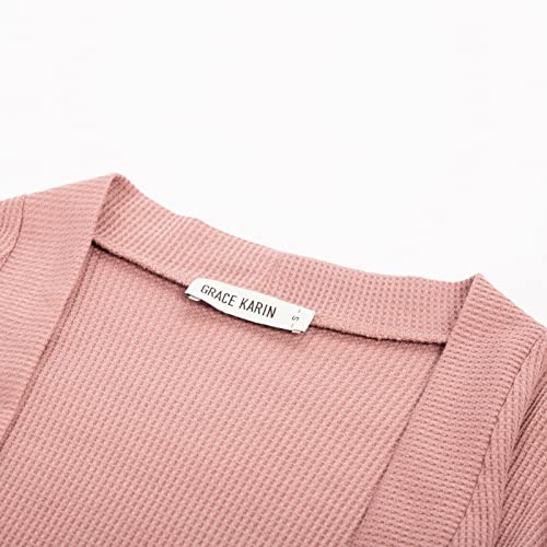 GRACE KARIN Cardigan da Donna Elegante Lungo Maniche Lunghe Due Tasche Rosa Tinta Unita S
