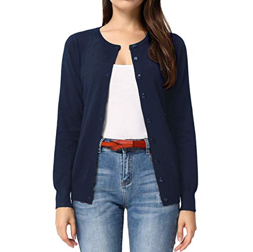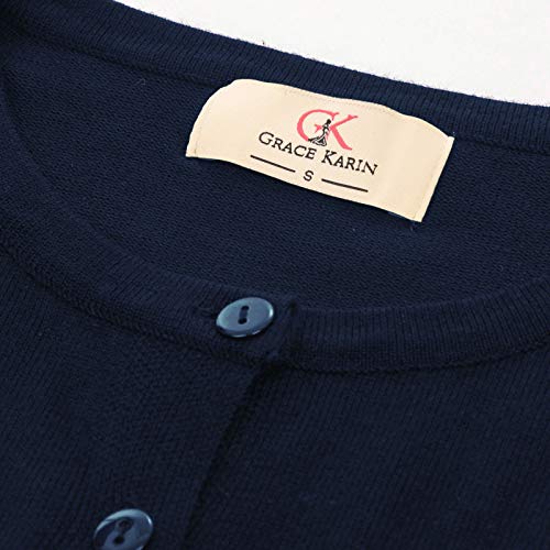 GRACE KARIN Cardigan Donna A Maniche Lunghe Girocollo Chiusura con Bottoni Primaverile Sottile Ufficio XL