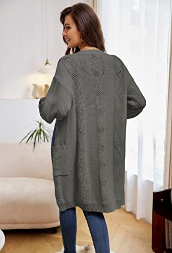 GRACE KARIN Cardigan Elegante da Donna a Tinta Unita Manica Lunga con Due Tasche Grigio Scuro S