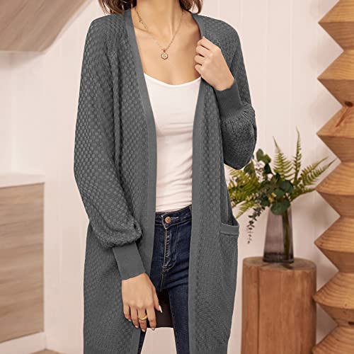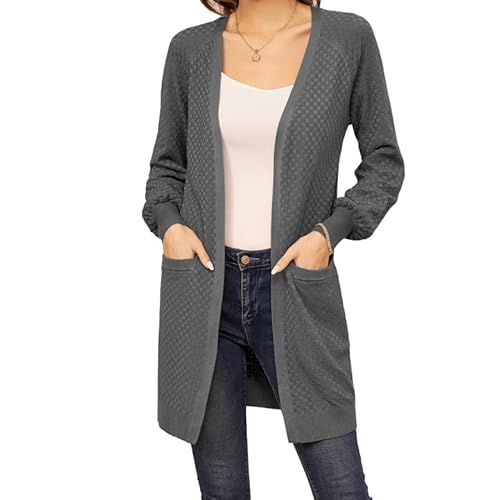 GRACE KARIN Damen Lange Strickjacke Langarm Offene Casual Strickmantel Herbst Cardigan mit Taschen CL1602A22-02_00S