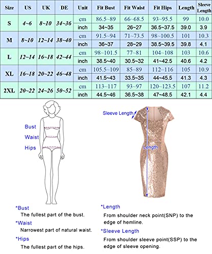 GRACE KARIN Donna Abito da Sera Maniche Corte Elegante Tinta Unita Anni 50 con Paillettes Aderente Slim Fit cl787-1 L