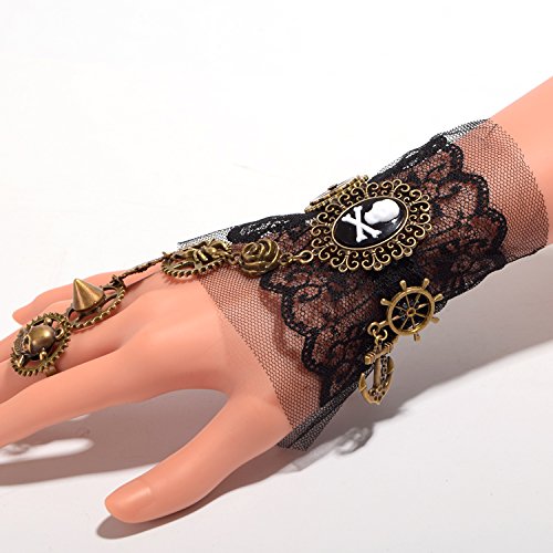 GRACEART Steampunk - Bracciale da polso in pizzo con anello a forma di teschio