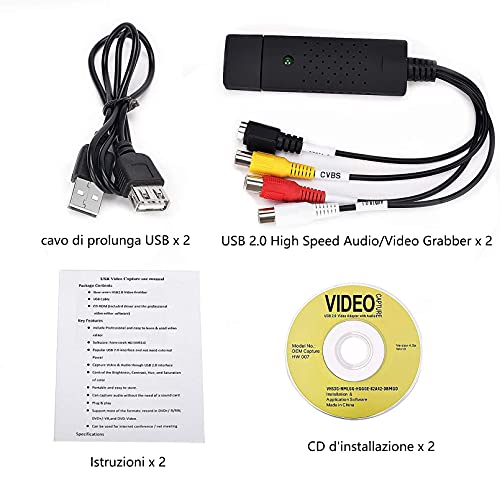 GRACETOP USB 2.0 Video Grabber,Audio/Video Converter Digitalizza con Cavo di prolunga USB,Compatibile con Windows 10 - Converti in Formato Digitale Le Vecchie VHS - Scheda di acquisizione Video USB