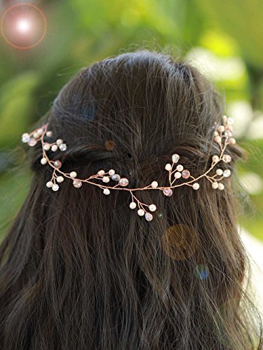 Gracewedding, fascia per capelli in oro rosa con cristalli rosa, per capelli da sposa, gioielli per capelli da sposa, fascia per capelli con strass e cristalli, accessori per capelli color oro rosa