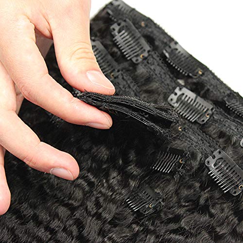Riya 8A Grade Afro crespi capelli umani Extension con clip diritta in capelli umani brasiliani Remy clip in capelli per donne nere 120G/set (55,9 cm, nero naturale)