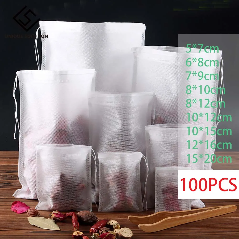 Food Grade Non-woven Fabric Tea Bags 100pcs Tea Filter Bags for Spice Tea Infuser with String Heal Seal Spice Filters Teabags