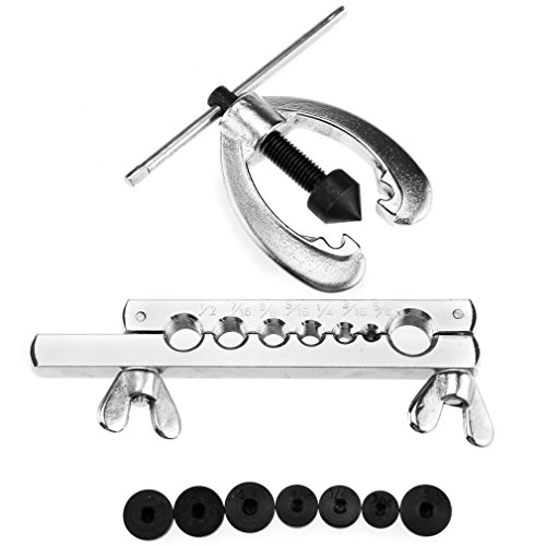 Flaring Tool Kit è fornito con tubo morsetto, tipo A Vite Spreader, 7 doppio Flare Dies