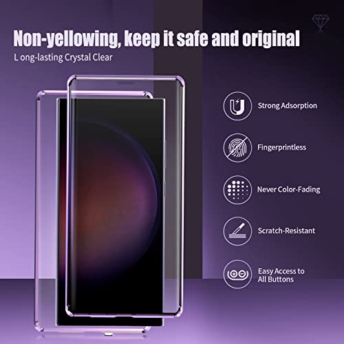360 Gradi Cover per Samsung Galaxy S23 Ultra Custodia Magnetico Paraurti in Metallo Antiurto cover [Protezione Camera] Bifacciale Trasparente Vetro temperato, Per Samsung S23 Ultra Flip case, Viola