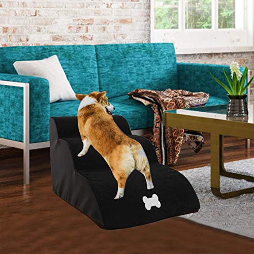 Gradini per animali domestici Scale con pendenza a 3 strati per cani Gatti, copertura gradini rimossa e lavata, cotone ad alta densità + flanella, antiscivolo traspirante, scala divano letto a rampa