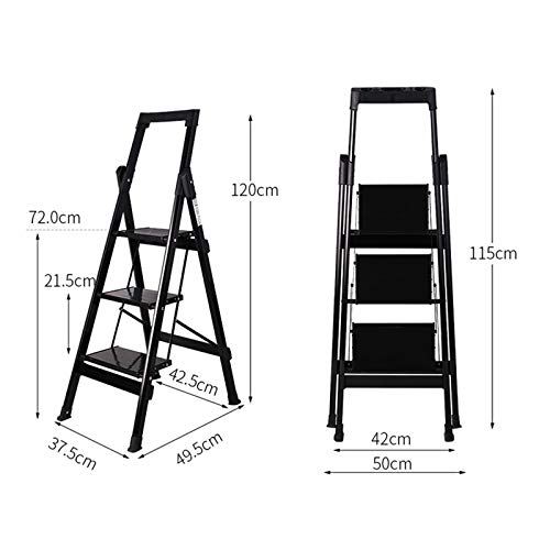 Gradini Pieghevoli In Lega Di Alluminio Nero, Durevole Durevole 3-4-5 Gradini Scala Patio Giardino Scale Multiuso Scala Di Ingegneria Per Esterni(Size:42.5*49.5*120CM,Color:nero)