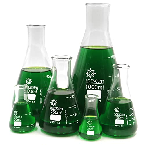 Set con 5 flaconi di Erlenmeyer in vetro borosilicato Flaconi di Erlenmeyer 50 ml 150ml 250ml 500ml Flacone graduato da 1000 ml