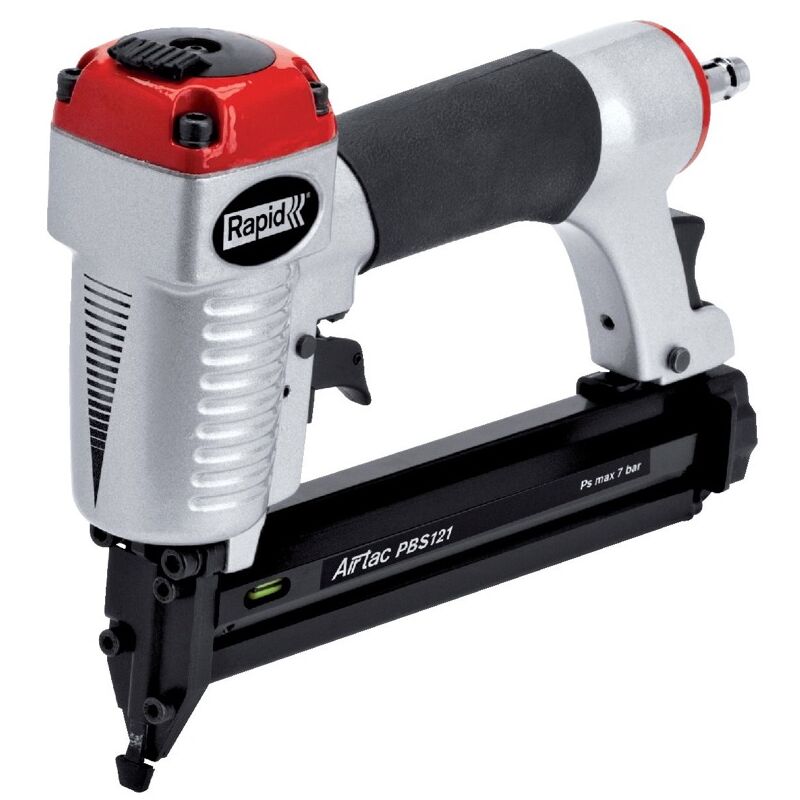 Dispositivo robusto in alluminio ad alta densità, leggero ed impugnatura ergonomica. Venduto nella sua custodia con un paio di occhiali protettivi, olio, chiavi, una scatola di 200 punti metallici 25 mm n°606 e una scatola di 200 chiodi 25 mm n°8. Consigliato per: fissaggio di pannelli, riparazione di mobili in legno, montaggio di battiscopa, pannellature sottili, chiusura di scatole in legno. Pressione di esercizio tra 5 e 7 bar. Peso: 1,2 kg. Utilizza graffette n. 606 da 12-30 mm o chiodi n. 8 da 15-30 mm. - Modello: PBS21 Marca: Rapid Agraf