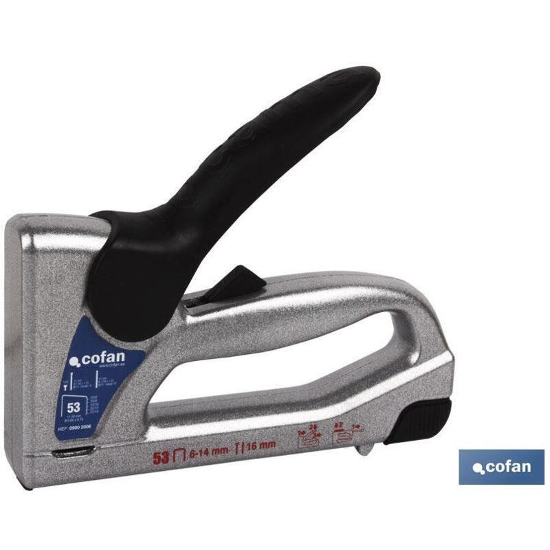 Cucitrice e Chiodatrice Professionale, Modello Professionale, per n.53 graffe con misure da 6 a 14 millimetri di lunghezza e chiodi da Ø1x1,25 x 15 mm di lunghezza. Si adatta con facilità a superfici come legno o tessuto. Il suo design ergonomico lo re
