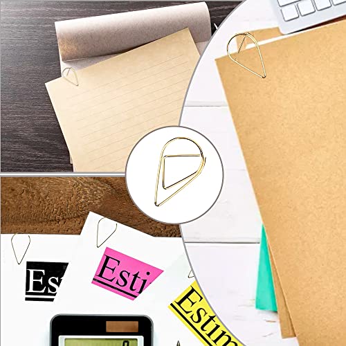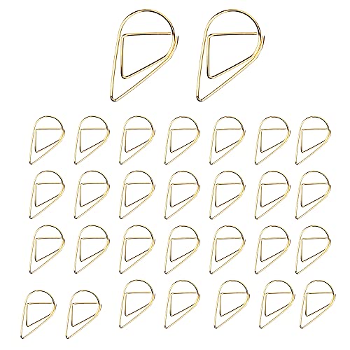100 graffette in acciaio inossidabile dorate a forma di goccia d'acqua cave, segnalibri, clip per segnalibri in metallo, per libri, foto, poster, note, memo 15 x 25 mm