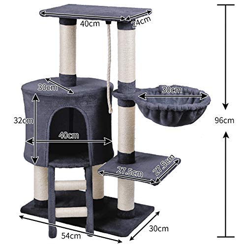 MC Star Tira Graffi Albero di Gatti Graffiatoio Parco Giochi Gioco Giocattolo con Amaca Sisal Naturale Altezza 96cm Grigio
