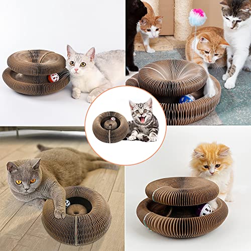 Graffiatoio per Gatt Pieghevole Magico, 1 Pcs Tiragraffi per Gatti, Tiragraffi per Gatti Interattiva, Tiragraffi in Cartone Ondulato con Palla di Campana Giocattolo e Erba Gatta (24x24x10cm)