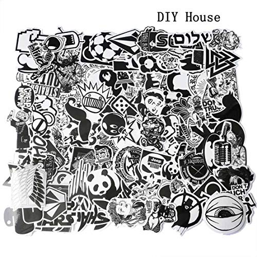 ☆ Dimensioni dell' adesivo è di 6 - 12 cm. Bianco e Nero, 100 diversi adesivi casuale, molto cool e misterioso.
