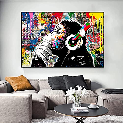 Graffiti DJ Monkey Canvas Art Poster e stampa Banksy Animal Paintings on The Wall Pictures for Living Room Home Decor 70x90cm (28x35in) Frameless
