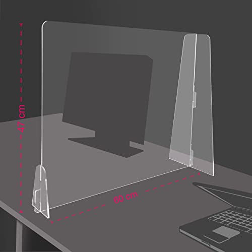 Q&B Grafiche Barriera Protettiva separatore da scrivania in plexiglass Trasparente 4 mm PDS - Divisorio per Ufficio parasputi parafiato (60x47 cm)