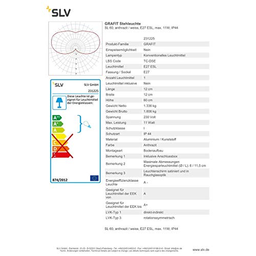 SLV GRAFIT - Lampada da terra per esterni, 60 cm, colore: Antracite