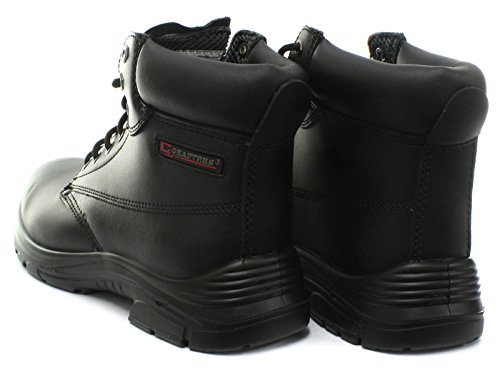 Grafters, stivaletti di sicurezza da uomo, neri, in pelle, pianta larga, M9503A, nero (Black), 45
