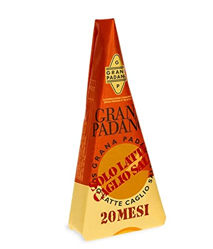 Spicchio incartato di Grana Padano DOP stagionato 20 mesi semigrasso a pasta dura ottenuto da latte parzialmente scremato.