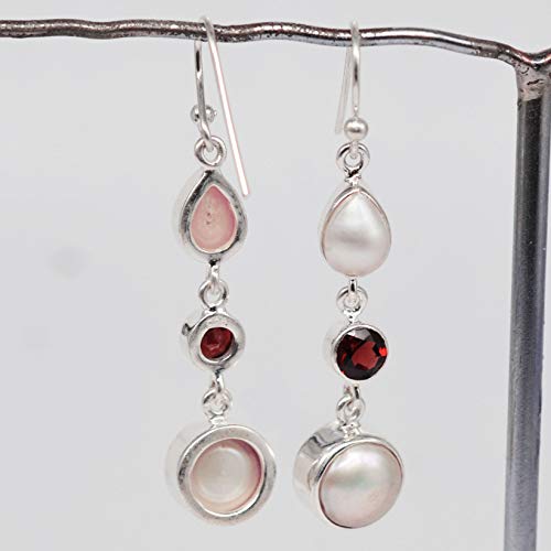 Granato, Perla Gemma Orecchino 925 Sterling Silver 6.26 gm Orecchino Gioielli Prati
