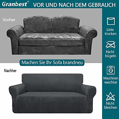 Granbest, copridivano spesso, ultra morbido, in velluto, sofisticato, antiscivolo, altamente elasticizzato, protegge il divano da gatti, cani, animali domestici (2 posti, grigio)