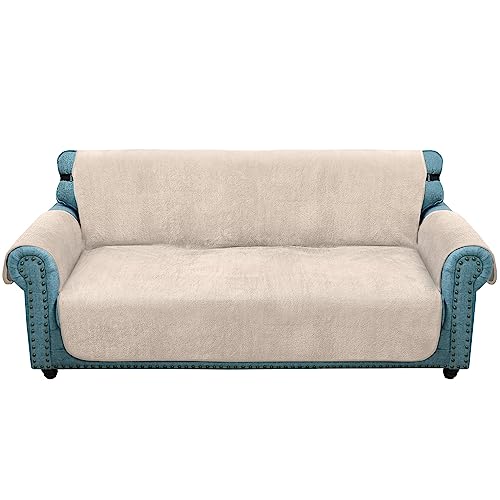 Granbest Copridivano in velluto super spesso, 3 posti, antiscivolo, durevole, con cinturino elastico, 4 stagioni, universale, per bambini, animali domestici, cani, gatti (3 posti, cammello)