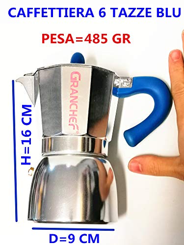 Granchef Caffettiera in Alluminio 6 Tazze, Moka Caffe Espresso con Il Manico e Il Pomelo Blu (6 TZZZE Blu)