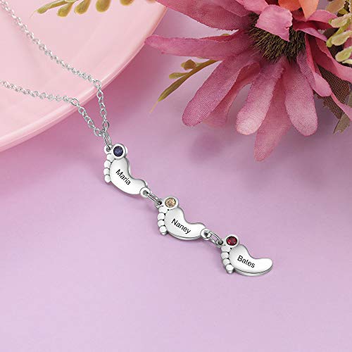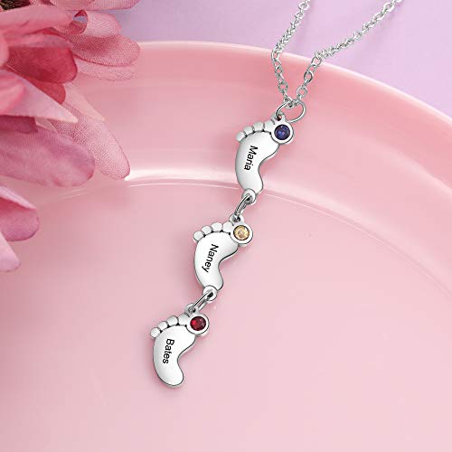 Grand Made Collana con Piedini per Bambini Verticali in Argento Personalizzati Collana con Madre di Compleanno Collana con 3 Pietre di Nascita simulate con 3 Nomi Collana con incisioni Gioielli Donna