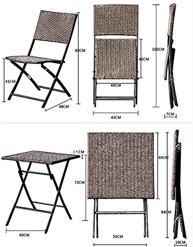 Grand Patio Terrazza Balcone Mobili Pieghevole Bistro Set di mobili di Legno, Resina e Set da tavola, 3 Pezzi di Tavolo e sedie da Giardino in Rattan