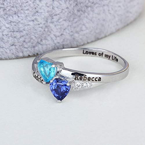 Grand Made Personalizzato reso Speciale con Birthstone simulato Scegli 2 Nomi Birthstone 2 e 1 Incisione, Personalizzato e Personalizzato Silver Ring Donna (7)