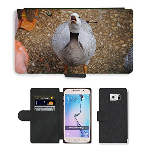 Grand Phone Cases PU Flip Carcasa Funda de Cuero Piel Cubre Case // M00140814 Anatra Quack Animale Uccello Natura // Samsung Galaxy S6 (Not Fits S6 Edge)