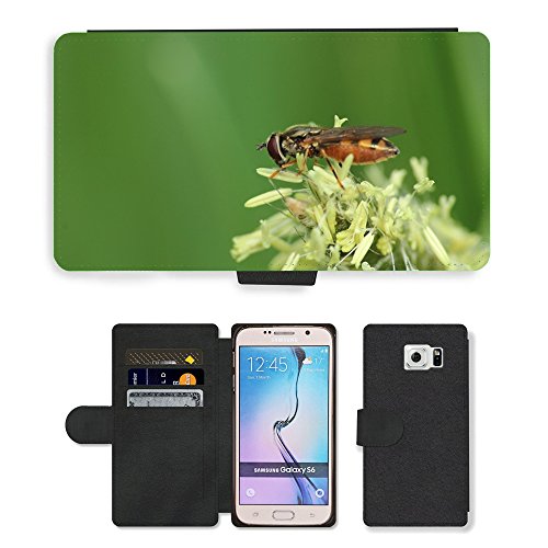 Grand Phone Cases PU Flip Carcasa Funda de Cuero Piel Cubre Case // M00140874 Insetto Mosca Fiore Impollinazione // Samsung Galaxy S6 (Not Fits S6 Edge)