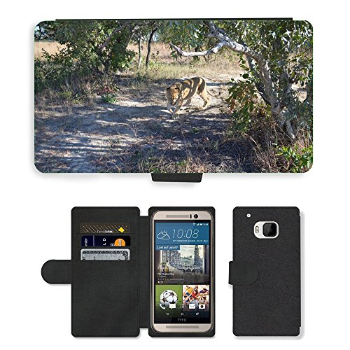 Grand Phone Cases PU Flip Carcasa Funda de Cuero Piel Cubre Case // M00141646 Leone Prowl Bush Africa Animale // HTC One M9