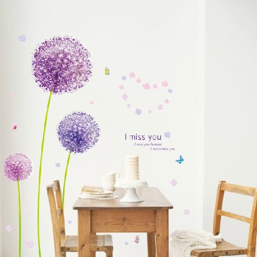 Hee Grand Removable Vinyl Wall Sticker Mural Decal Art Purple Dandelion