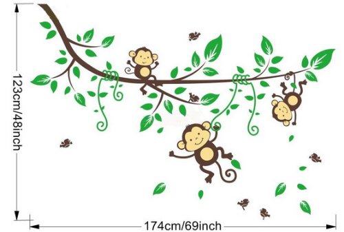 Grand Singe suspendue et les oiseaux Green leaves strickers muraux pour décoration de pépinière