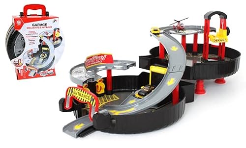 CONTENUTO: Il garage ha 2 livelli e include 1 ascensore, 2 veicoli, 1 elicottero, adesivi e un manuale di montaggio.