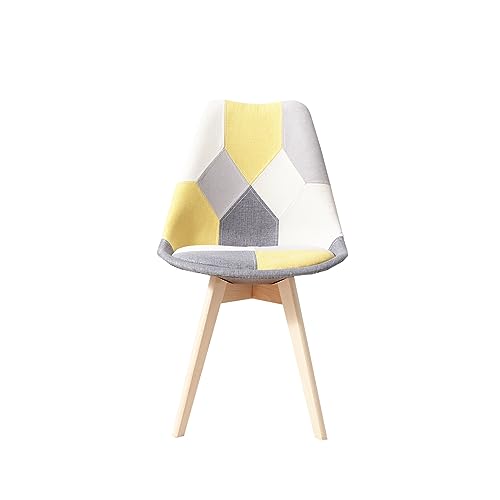 GrandCA HOME Set di 2 Sedie da Pranzo Scandinave con Cuscino del Sedile in Tessuto Patchwork Staccabile e Gambe in Legno di Faggio, per Soggiorno, Sala da Pranzo, Cucina, Patchwork Giallo