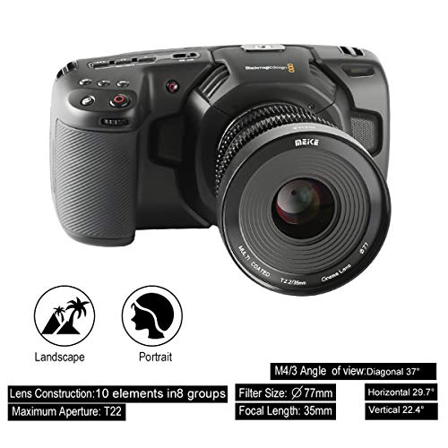 MEKE 35 mm T2.2 Grande Apertura Messa a Fuoco Manuale Bassa Distorsione 4K Mini Cine Lens per Micro Quattro Terzi M43 MFT Compatibile con Olympus Panasonic Lumix BMPCC 4K Zcam E2 GH5 GH6 OM-1